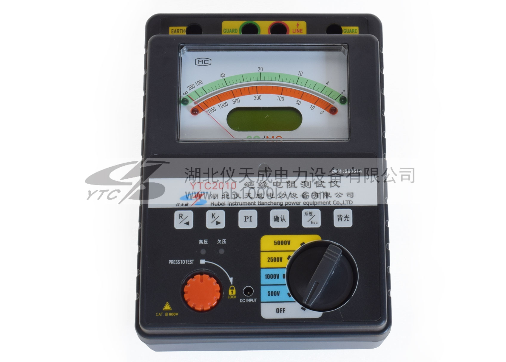 YTC2010智能雙顯絕緣電阻測試儀具有多種電壓輸出等級(500V、1000V、2500V、5000V)、容量大、抗干擾強、指針與數(shù)字同步顯示、交直流兩用、操作簡單、自動計算各種絕緣指標(biāo)(吸收比、極化指數(shù))、各種測量結(jié)果具有防掉電功能等特點。