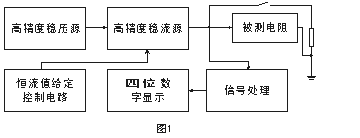 其中穩壓源是高精度低紋波電源,可提供10A的電流輸出。穩流源輸出的電流受其分擋切換控制電路的控制。當測量選擇不同擋位時,輸出不同的穩定電流。當恒流電流通過被測電阻時在被測電阻上產生穩定的電壓信號,該信號經計算機處理后由液晶顯示器直接顯示電阻值。
