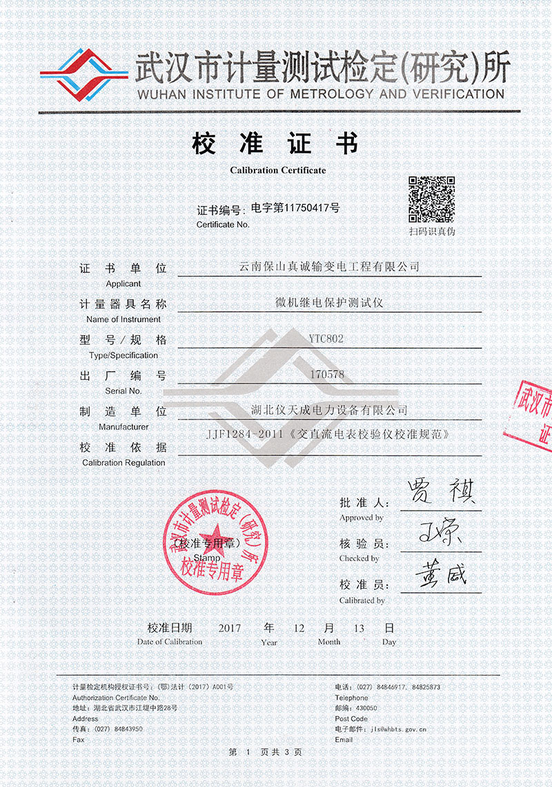 企業產品嚴格按照國際、國家標準及行業規程生產,通過國家、各省級、市級電力研究所、計量中心及電力權威部門的檢測,全面通過ISO9001國際質量管理體系認證。